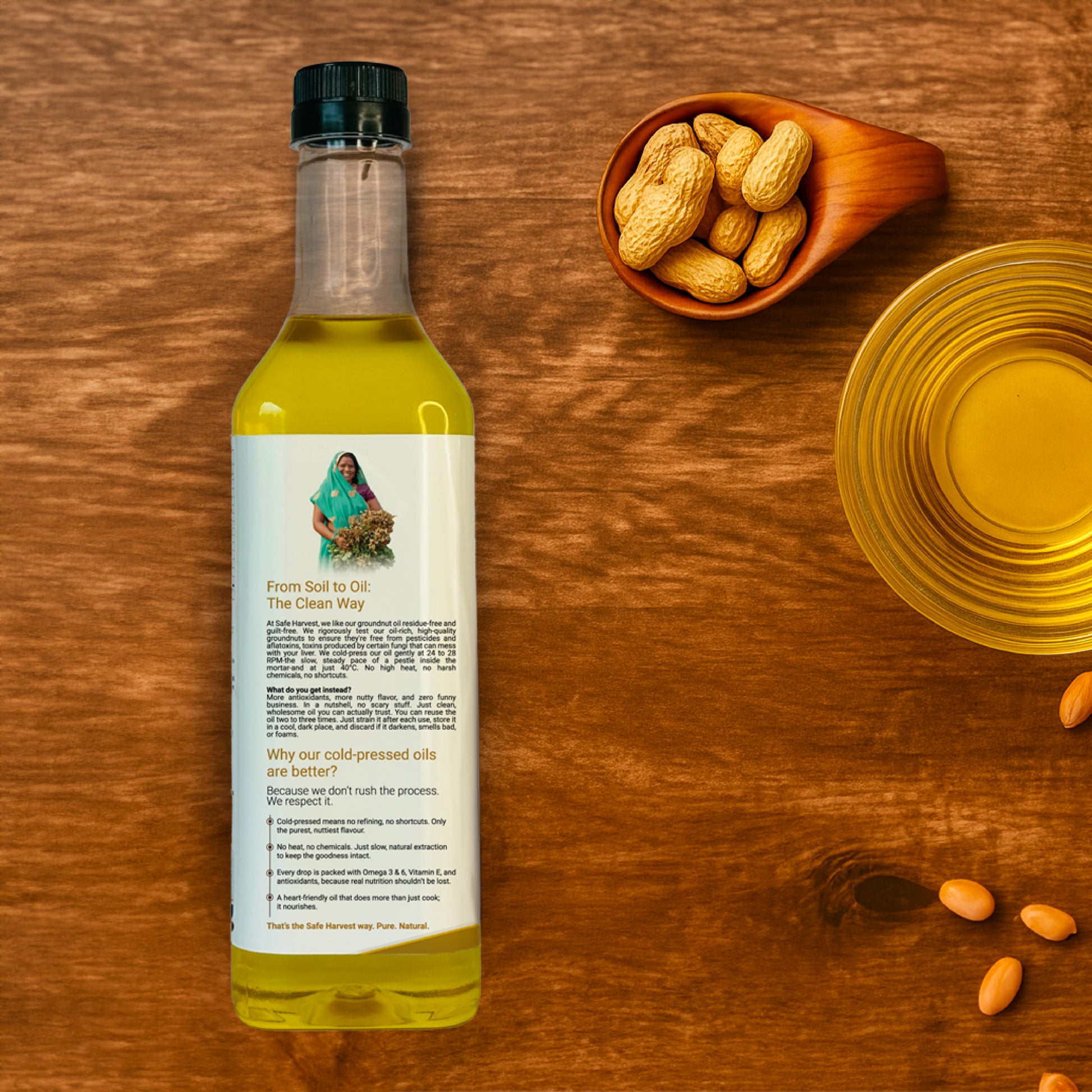 Pesticide-free, unrefined cold-pressed Groundnut oil with a rich aroma and purity. Naturally cholesterol-free and packed with essential nutrients, making it a perfect choice for cooking and overall wellness.