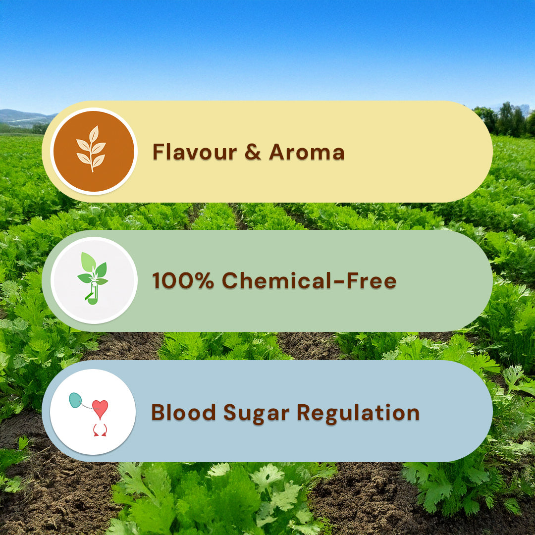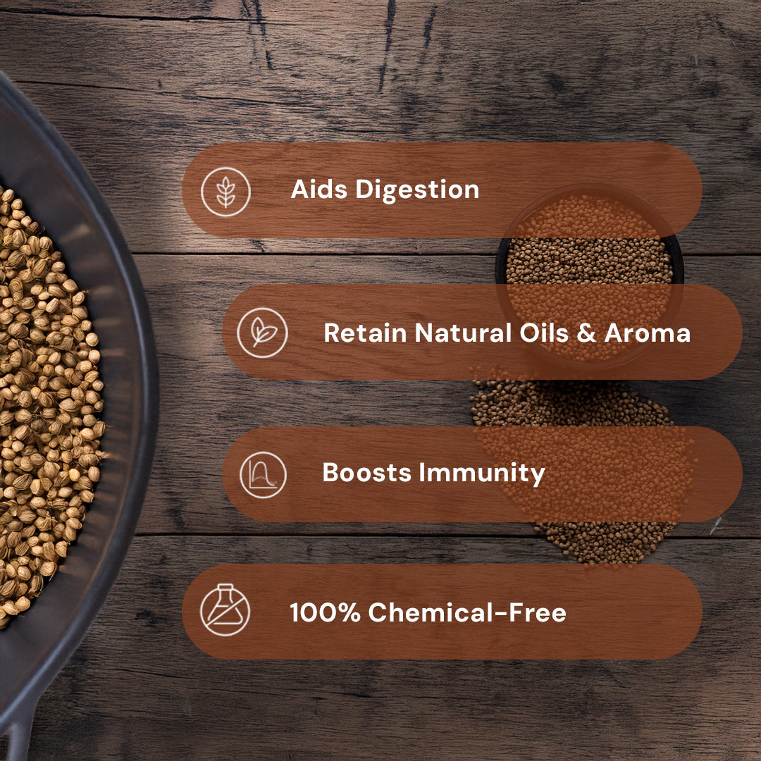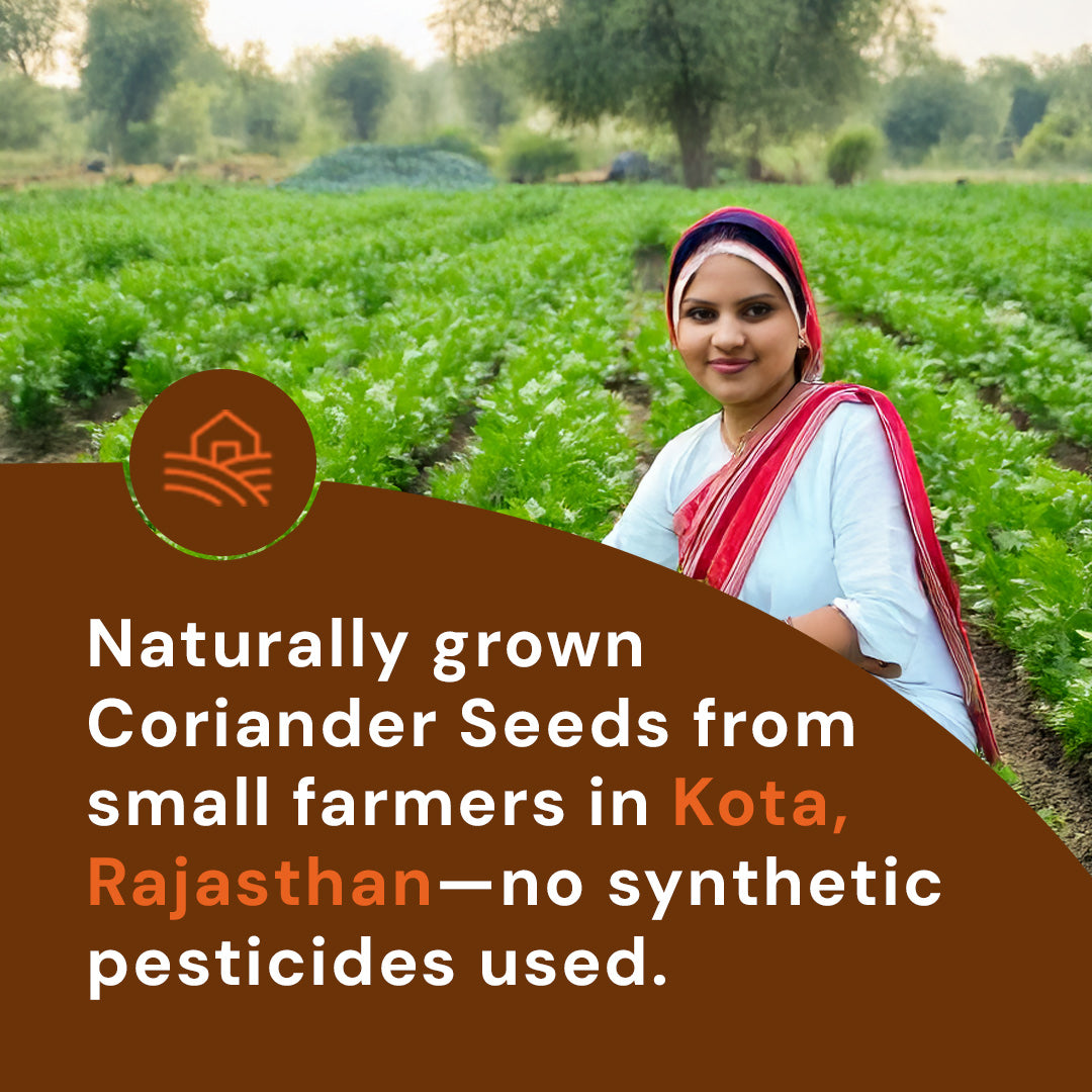 100% Chemical-Free Coriander Seeds sourced from small farms in Kota, Rajasthan. Carefully harvested, cleaned and packed to retain its natural oils and aroma.